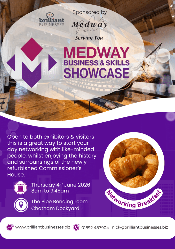 Medway Business and Skills Showcase event celebrates businesses in Medway helping them grow and prosper. It’s FREE to attend and open to all professionals across Medway and Kent.